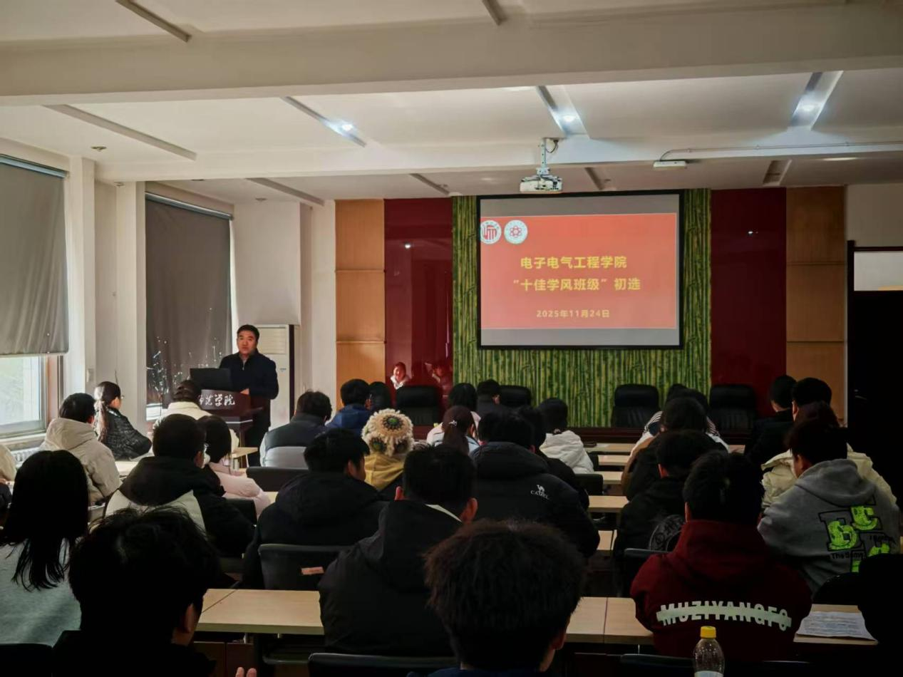 11月24日,我院在物电楼208开展 “十佳学风班级” 院级选拔赛。学院副书记蒋玉涛、学工班主任孙莉娟及全体辅导员组成评审团,2023级、2024级共15个班级同台竞技,竞逐校级参赛名额。