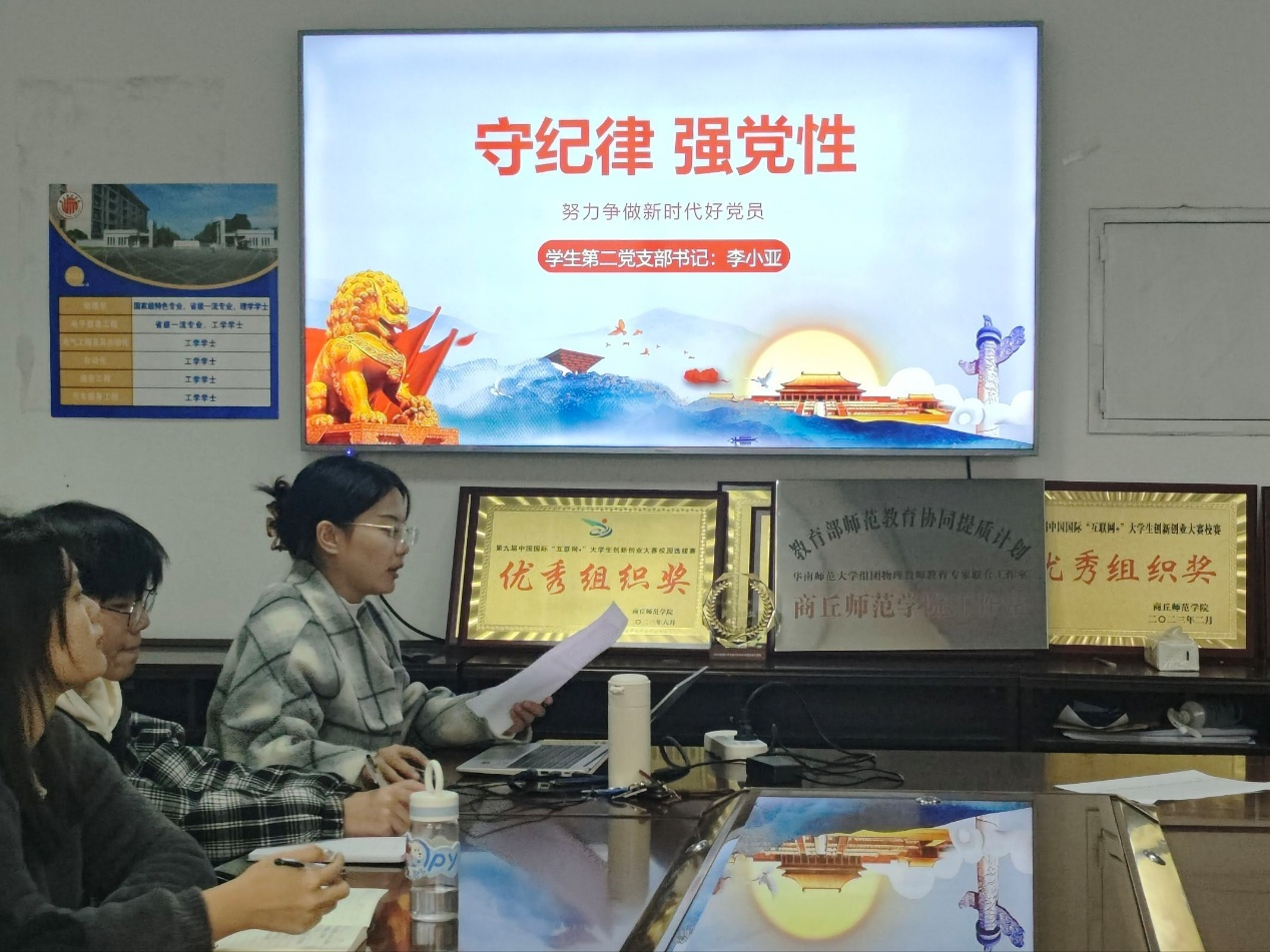 10月30日,我院学生第二党支部书记李小亚为入党积极分子上党课,党课的主题是《守纪律 强党性——努力争做新时代好党员》。
