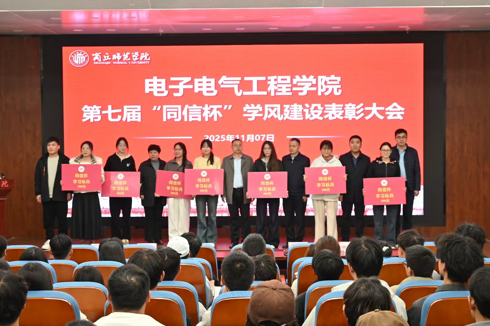 11月7日,电子电气工程学院在睢阳校区工科楼报告厅隆重举行第七届“同信杯”学风建设表彰大会。院长赵纲领、党委副书记蒋玉涛、教学办主任吕志及全体辅导员出席会议。同信能源集团供应链总经理耿鸿翔、人力中心副主任沙瑞、配网设计部经理潘龙参会。大会由学工办主任孙莉娟主持。