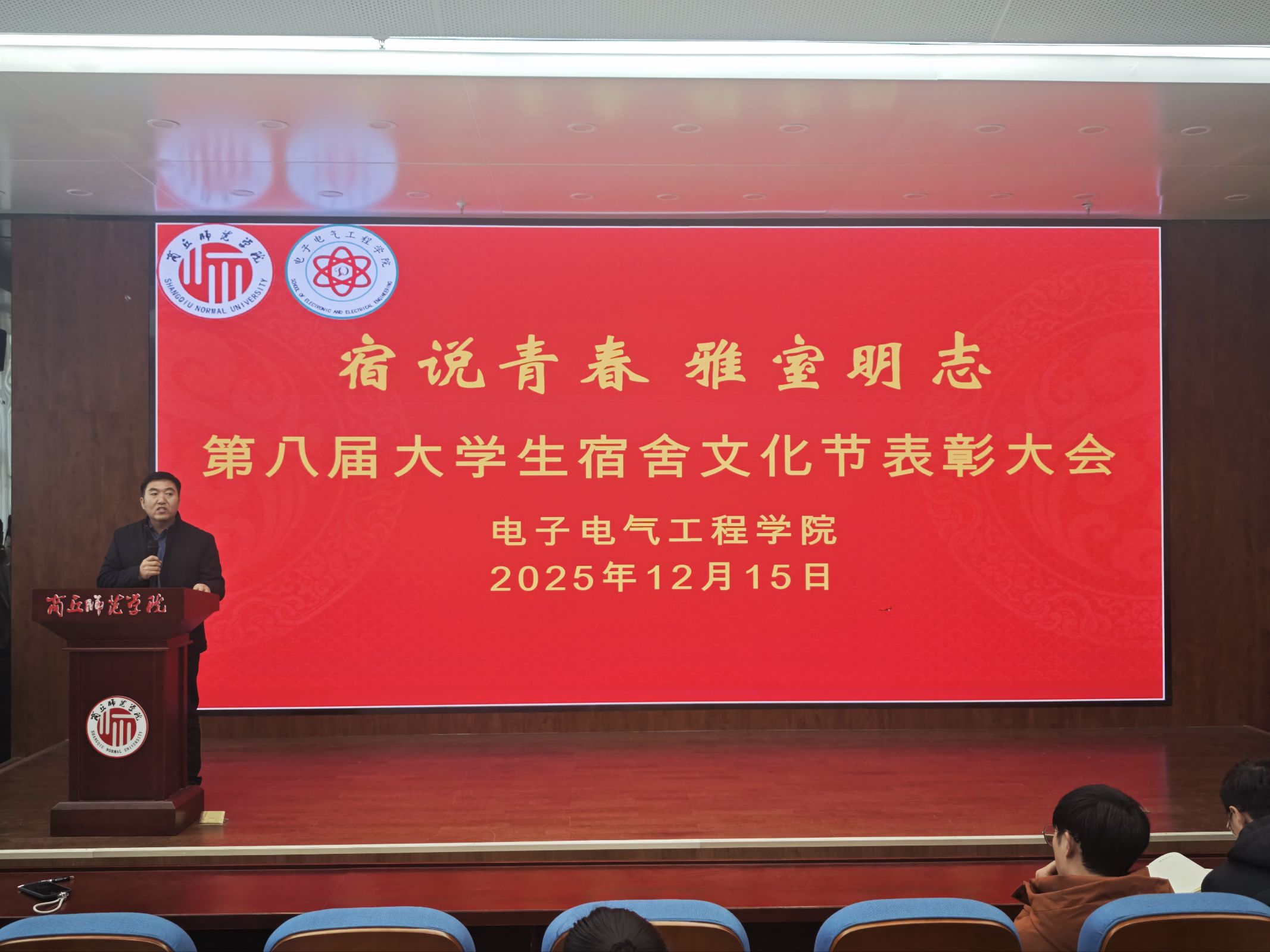 大会伊始,孙莉娟宣读《电子电气工程学院关于表彰“宿说青春,雅室明志”第八届大学生宿舍文化节获奖宿舍的决定》。随后,出席领导老师依次为获奖宿舍代表颁奖。本次活动共评选出一等奖宿舍9个、二等奖宿舍16个、三等奖宿舍28个。