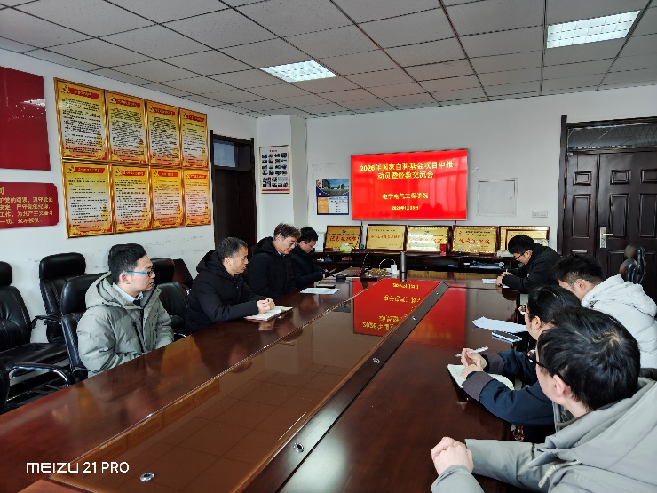 1月23日至1月28日,电子电气工程学院组织开展2026年度国家自然科学基金项目申报系列活动。学院全体申报国自科基金项目教师参加会议,会议由副院长曾庆国主持。