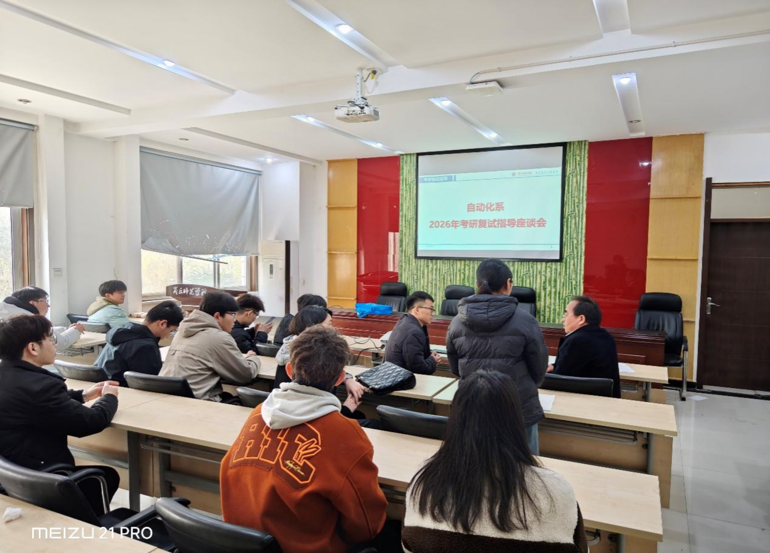 为帮助2026届考研学子更好地备战复试,掌握调剂技巧,增强备考信心,3月12日下午,自动化系于物理楼208成功举办了考研复试指导会。自动化系主任贾廷见主持,自动化系教师马艳彬、刘黎明、张涵、随博文参与。