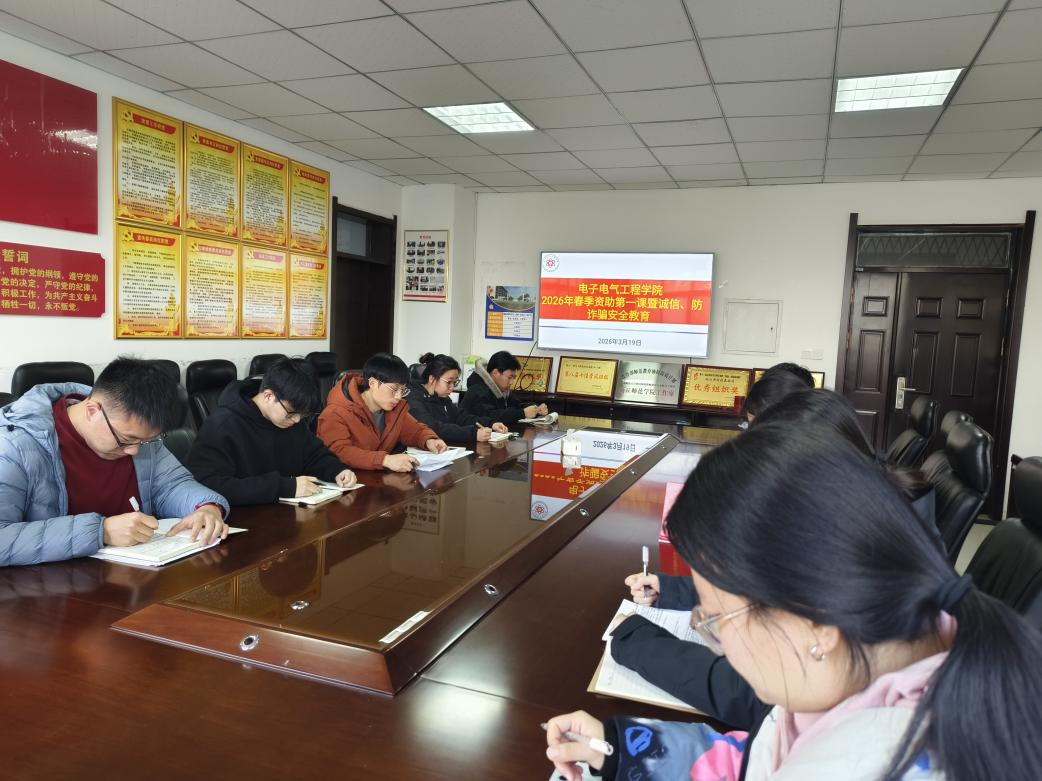3月19日,我院在睢阳校区物电楼206会议室召开2026年春季资助第一课暨诚信、防诈骗安全教育,切实落实国家学生资助政策,强化学生诚信意识,筑牢校园防诈骗安全防线。活动由学院资助专员王兴主持,2024级和2025级生活委员参会。