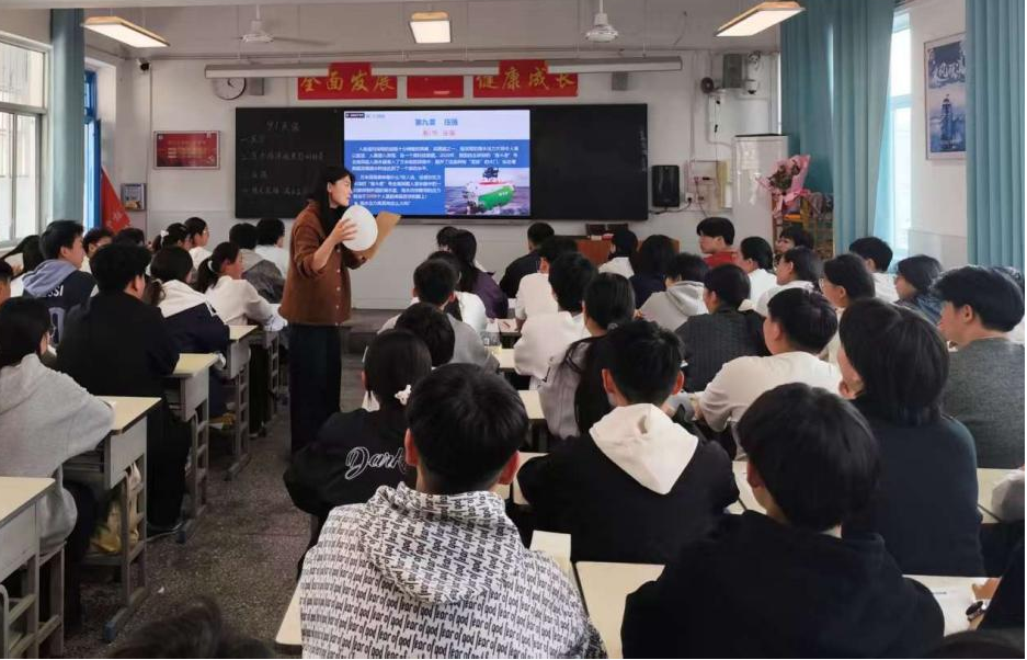 第一节课由高扬老师授课。高老师以生活实例为切入点,自然流畅地引入“压力”概念,迅速拉近了物理与生活的距离。在核心教学环节,学生分组开展探究压强作用效果的影响因素实验。同学们分工合作、积极动手,认真观察并记录现象。探究结束后,各小组代表上台分享实验成果。