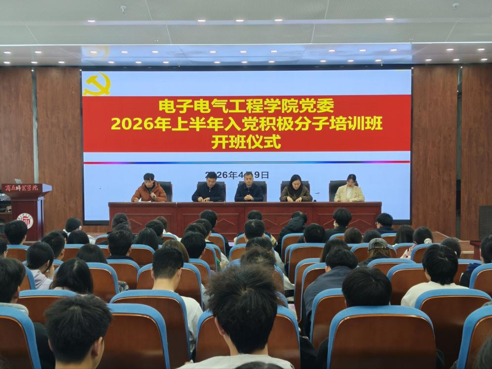 4月9日,我院2026年上半年入党积极分子培训班开班仪式在工科大楼报告厅举行。学院院长赵纲领、院党委副书记蒋玉涛,各学生党支部书记及全体入党积极分子参加仪式,会议由学院专职组织员王兴主持。